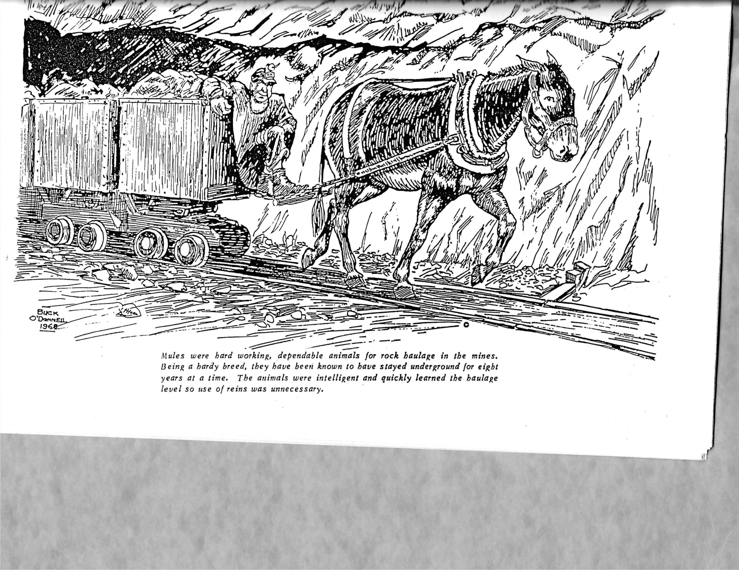 (Ink illustration by Buck O’Donnell in 1967; public display, World Museum of Mining, Butte, Montana, USA)